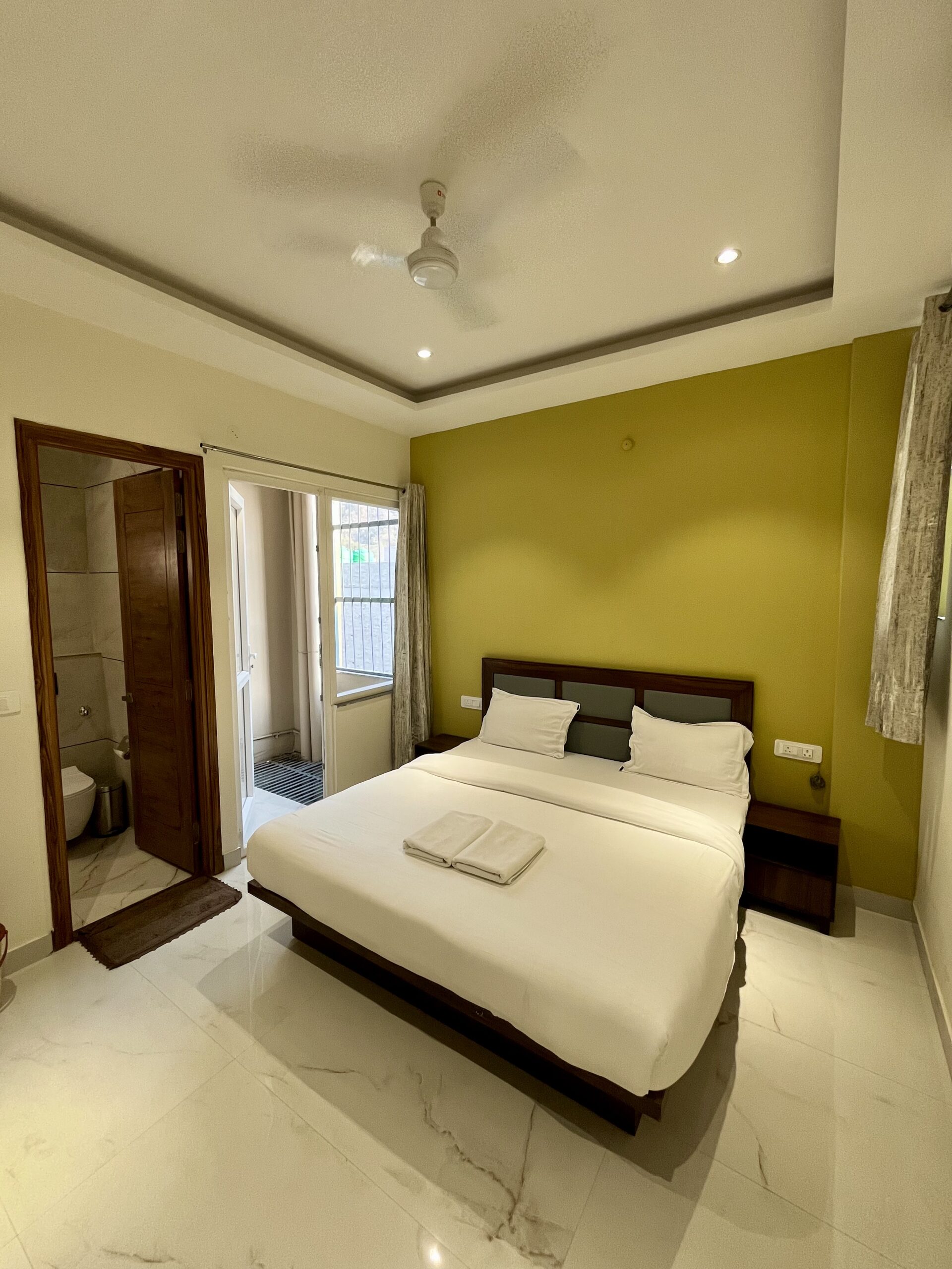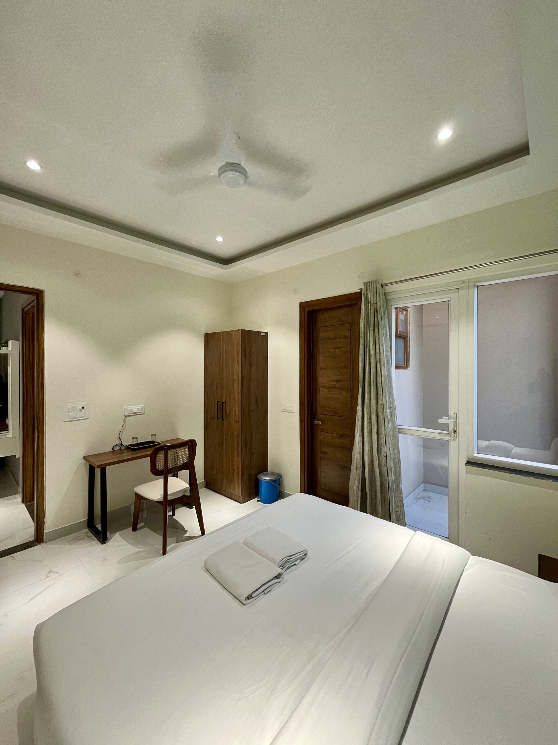 Experience peaceful comfort with our spacious luxury bedroom at BackStayz Lakshman Jhula. Thoughtfully designed with elegant decor and modern amenities, it offers a perfect retreat after a day by the Ganges or exploring nearby cafes and markets.